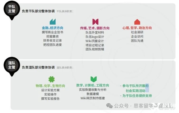 iGEM需要团队参与,可以跨国跨校组队,一个团队最佳人数是15~20人。团队需要一名指导老师、队长、副队长等角色,团队内部分为干队和湿队,分别承担不同的工作内容。