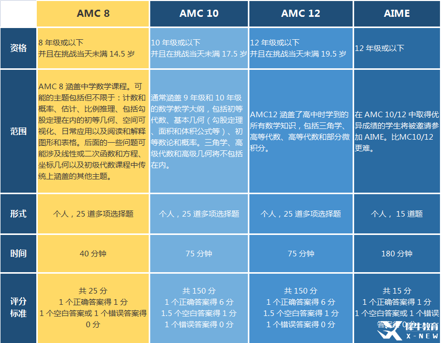 该赛事为系列竞赛包括AMC8/10/12、AIME、USA(J)MO,其中AMC10/12都可以晋级AIME。