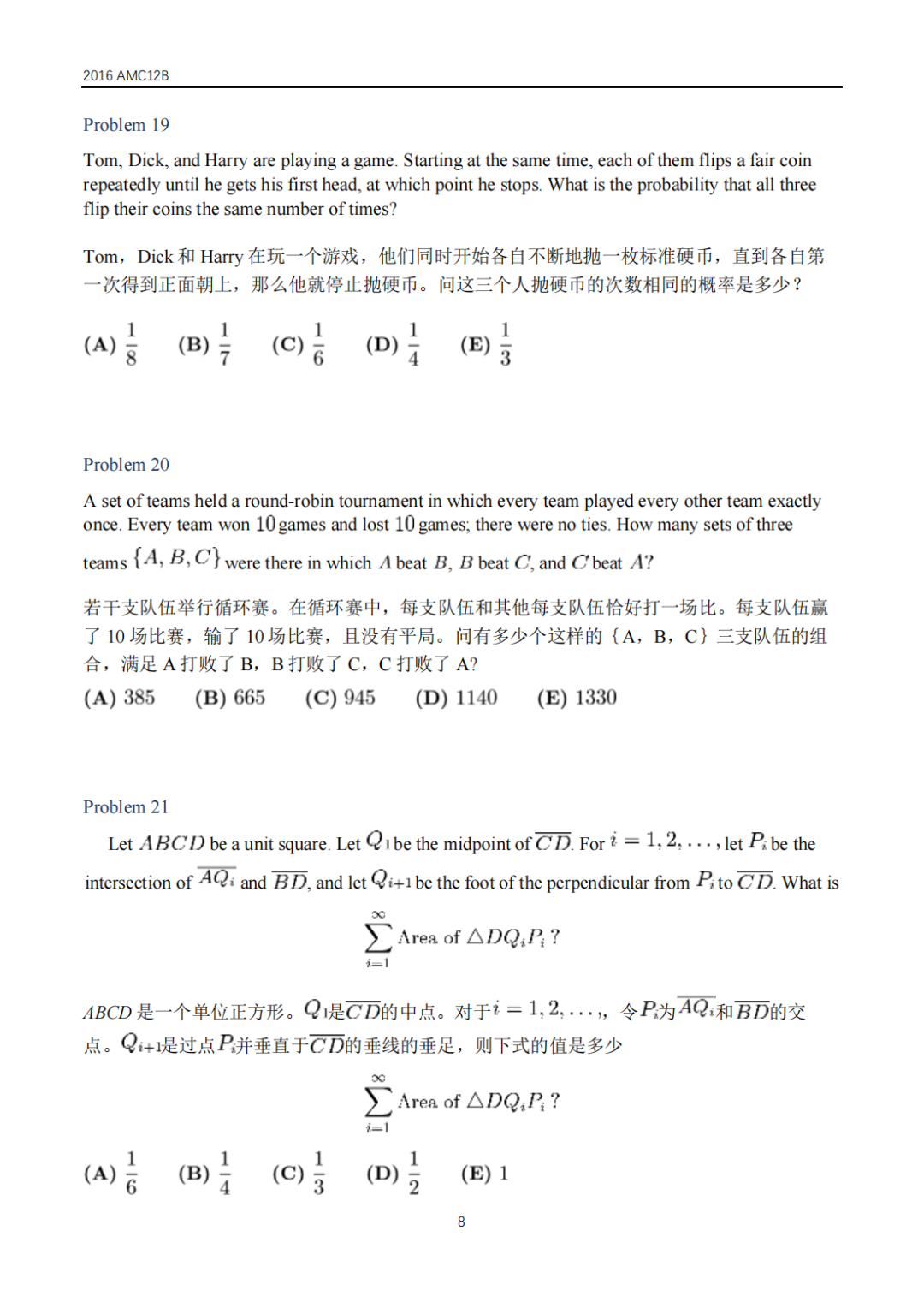 AMC12考题皆以考察参赛者逻辑推理能力和创造性思辨能力为主;