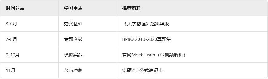 BPhO竞赛体系就像物理学科的"晋级天梯",分为入门级挑战赛和正赛两大赛道。参赛者可根据年级和基础选择不同起点,以下是2025赛季关键时间表: