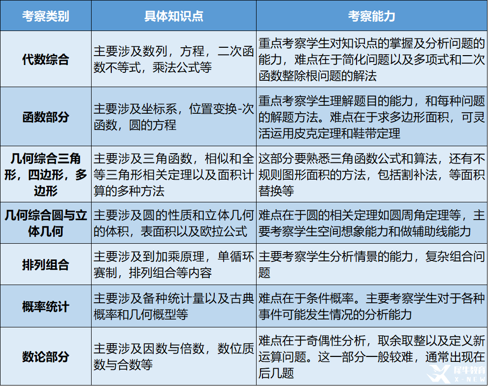 AMC10竞赛的核心知识点包括比例、几何、数论、概率和统计等,但并未涉及微积分和三角函数等更高阶的内容。从知识范围来看,它与国内初中学习的校内知识大致相当,因此非常适合7~9年级的学生参加。
