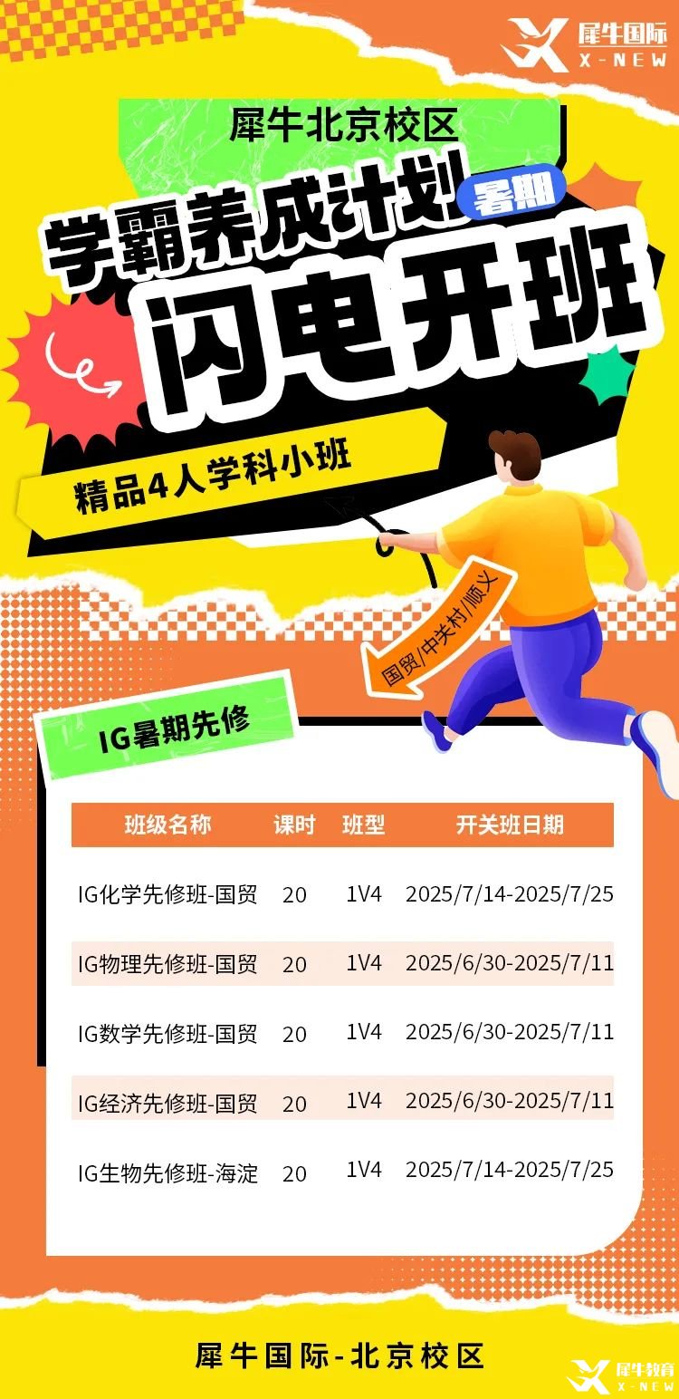 犀牛IG暑假先修培训课程设有IG数学、IG物理、IG生物、IG经济、IG化学等热门IG选科,涵盖了50-60%知识点,快人一步夯实基础,开学不焦虑。