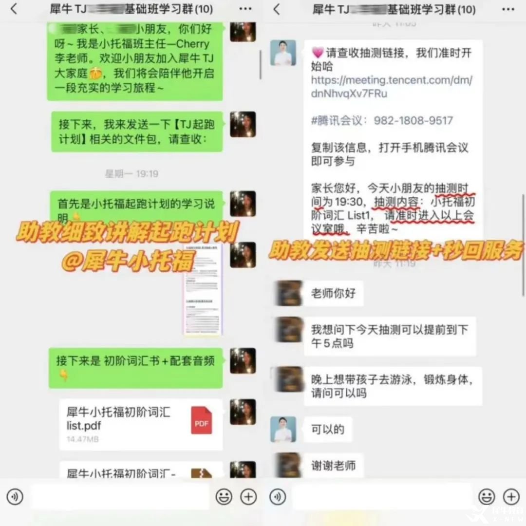 每个班级都配备了助教老师,在群内督促+跟盯学生学习,每天进行单词背诵和听力训练。