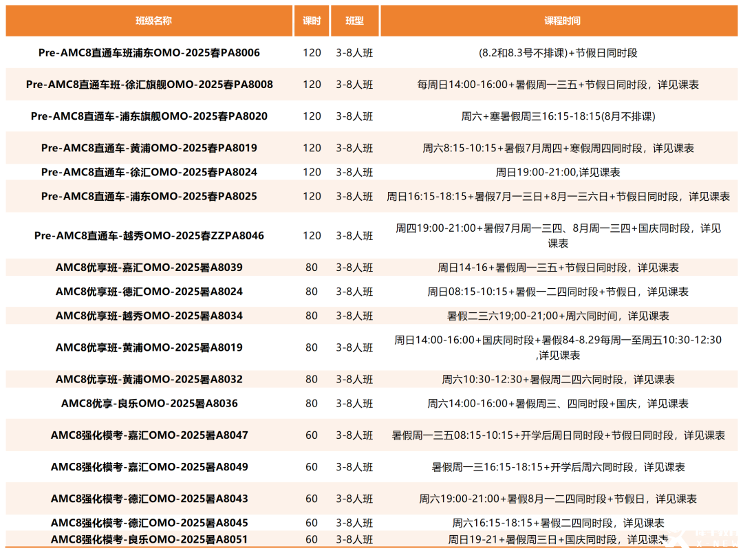 AMC8课程:适合5-6年级的学生,我们则推出了更为丰富的课程选择,包括AMC8基础班、强化班和冲刺班。