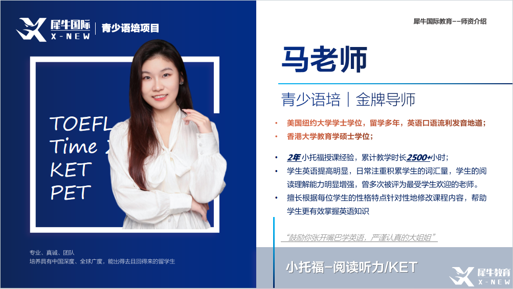 - 小托福师资:具备专业的英语教学背景,熟悉国际教育体系,能够帮助学生高效提升英语能力。