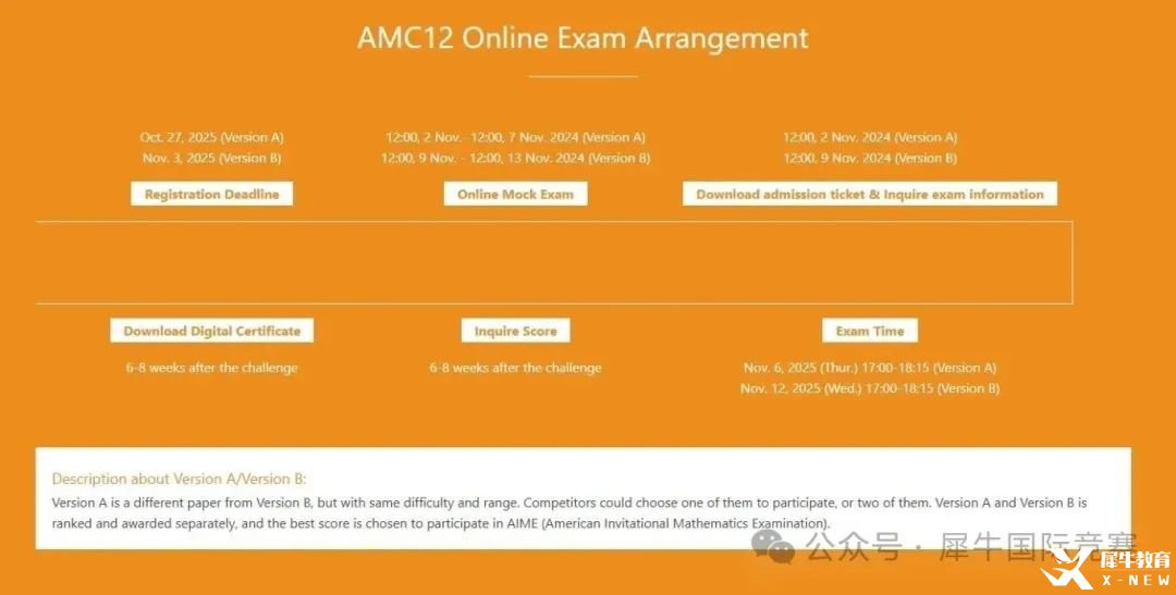 AMC10/12竞赛怎么报名?报名时间是什么时候 ?25年的AMC10/12竞赛报名时间确定了吗?什么时候截止报名?AMC10/12个人可以报名吗?AMC数学竞赛的报名方式与流程清楚吗?竞赛报名的方式有几种,报名流程有哪些、今天一文为大家讲清楚AMC竞赛报名,没有报名渠道的同学,犀牛支持为大家代报名,可在线咨询详细了解。