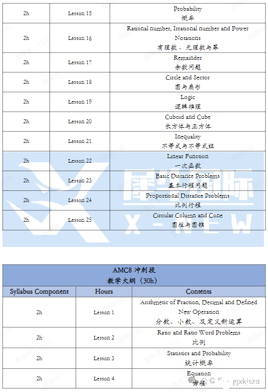 课程目标:帮助学生系统地学习AMC8的知识体系,科学高效备考。