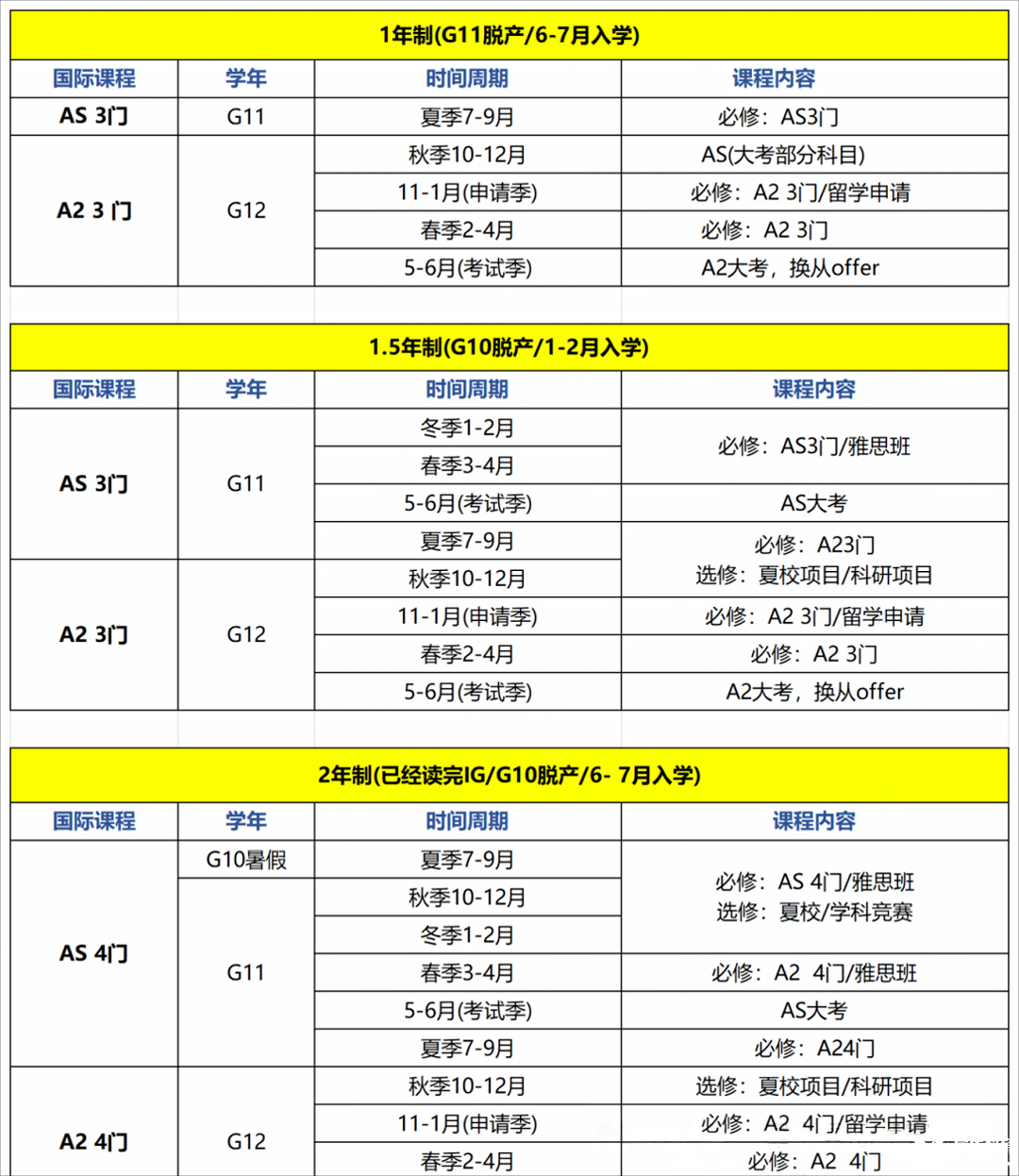 犀牛教育alevel脱产有1年制、1.5年制和2年制,根据学生具体情况来规划课时和学习方案。