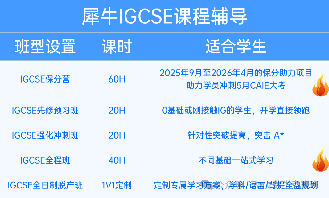 犀牛提供全面IGCSE课程辅导,涵盖数学、物理、化学、生物、经济、计算机等热门科目。