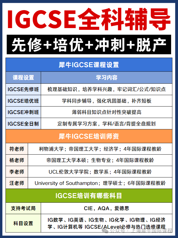 IGCSE先修班:IGCSE学科基础知识学习,重难点专项辅导