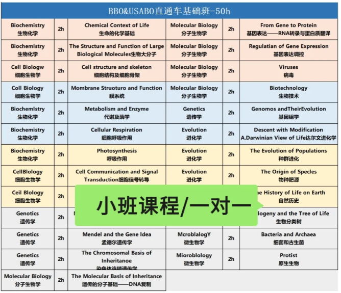 BBO竞赛班型设置:一对一/2~8人小班,学生根据自己的生物水平选择合适的课程
