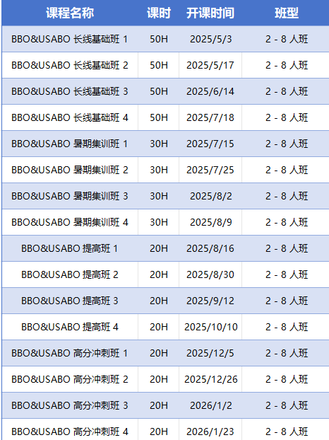 在BBO竞赛辅导方面,思客根据不同学生水平,开设了长线基础班,暑期集训班,提高班,高分冲刺班,根据学生入学测试题,匹配相应的班级针对性进行辅导!助力学生高效备赛!