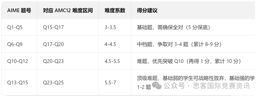 AIME题目难度呈 “阶梯式上升”,与AMC12难度对应明确,备考时可针对性突破。