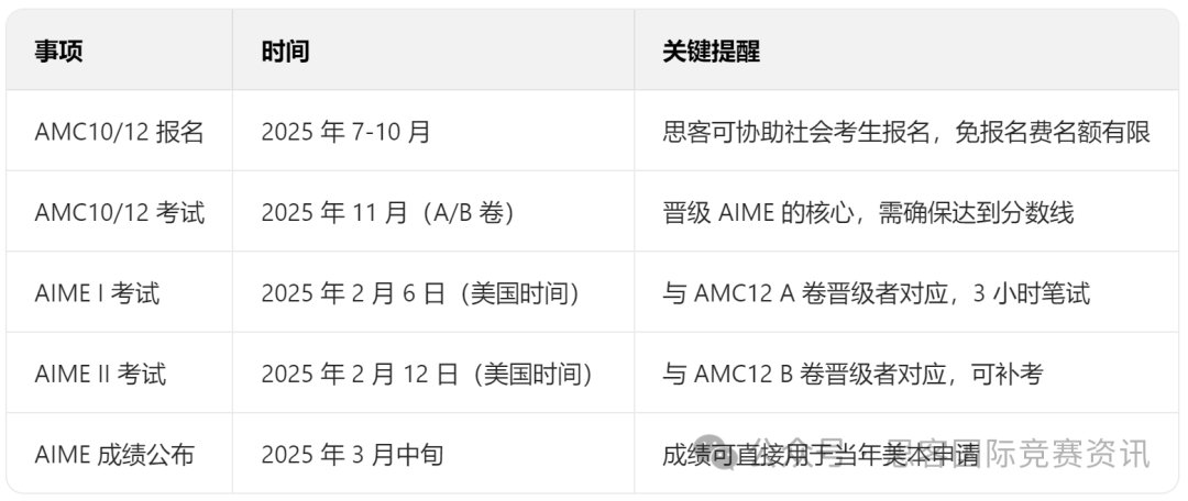 作为AMC的进阶赛事,AIME(美国数学邀请赛)不仅可以验证数竞实力,更可以冲击顶尖名校—— 现在2025年AIME备赛已进入关键期,想冲高分的学生,千万别等AMC出分再准备,提前规划才能稳赢!