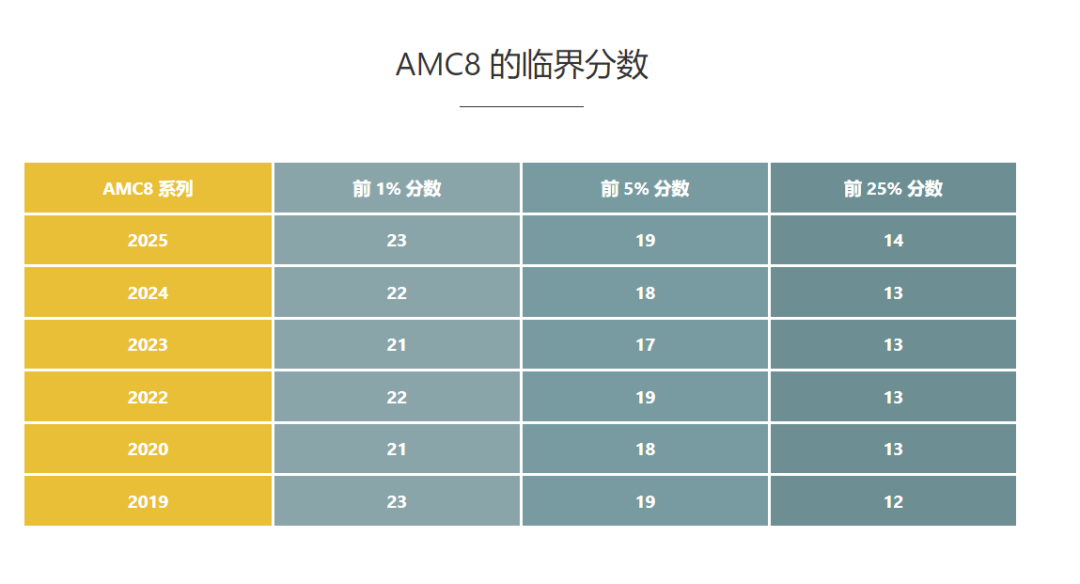 按需定目标,转轨国际学校建议冲20+:6-8年级学生备考AMC8.需结合自身需求制定目标:若计划转轨国际学校,AMC8成绩是重要竞争力,建议将目标设定为20分以上(满分25分),以增强申请优势;若仅为提升数学能力,可根据当前水平灵活调整目标,平衡备考与校内学习节奏。