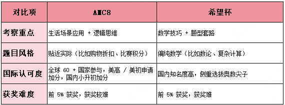 校内重 "计算准确",AMC8 重 "策略选择":比如用排除法、极端值法快速锁定答案。