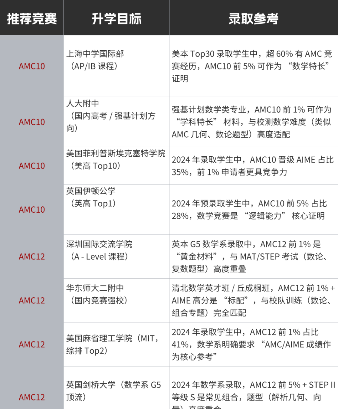 7-9年级:零基础优先选择AMC10.有提前学、基础好可以直接选择AMC12;