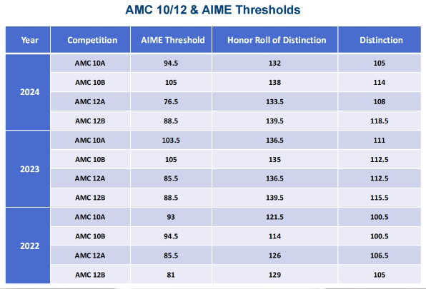 AMC10全球荣誉奖(AMC10 Achievement Roll):8年级及以下在AMC10中获得90分以上