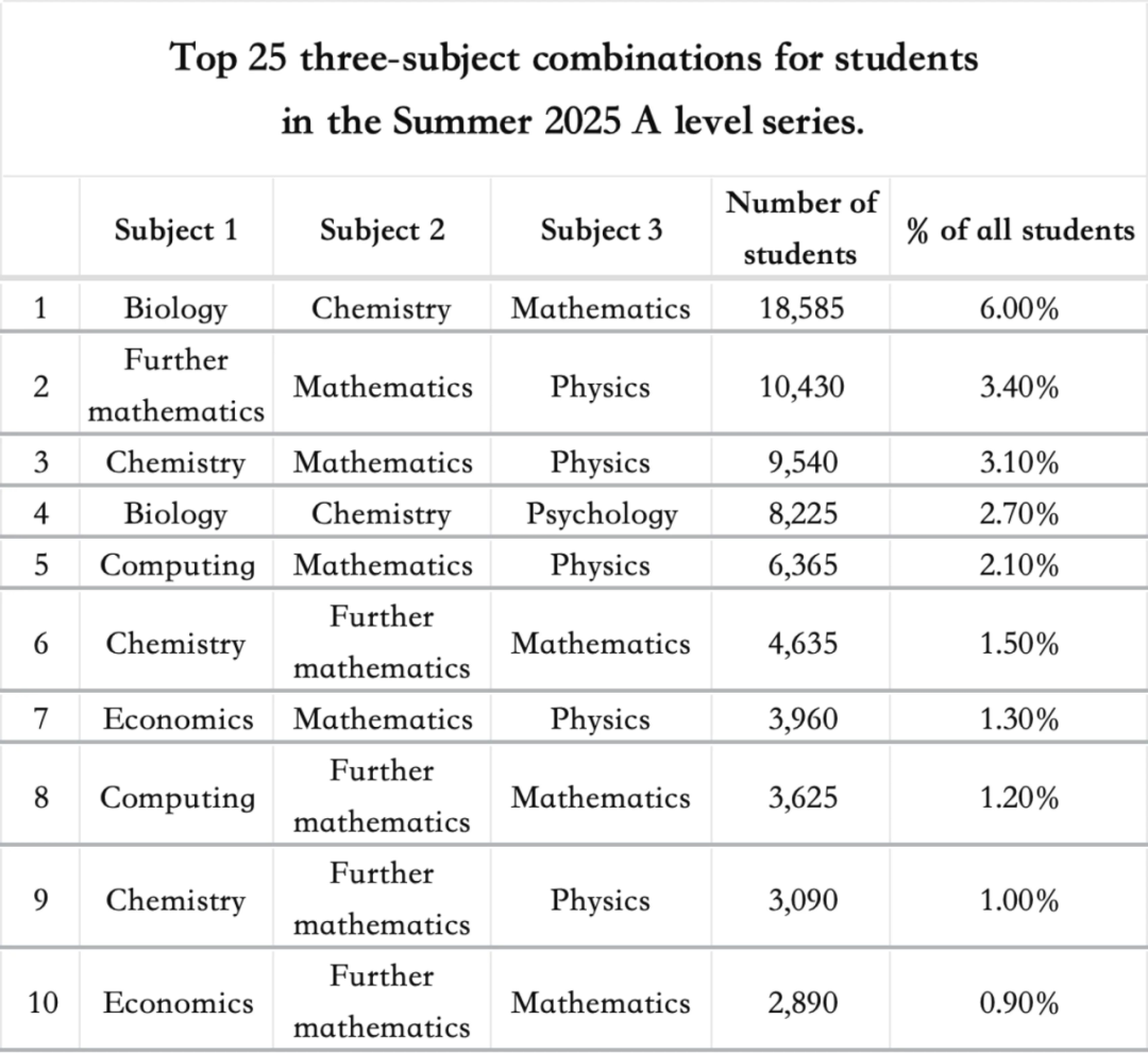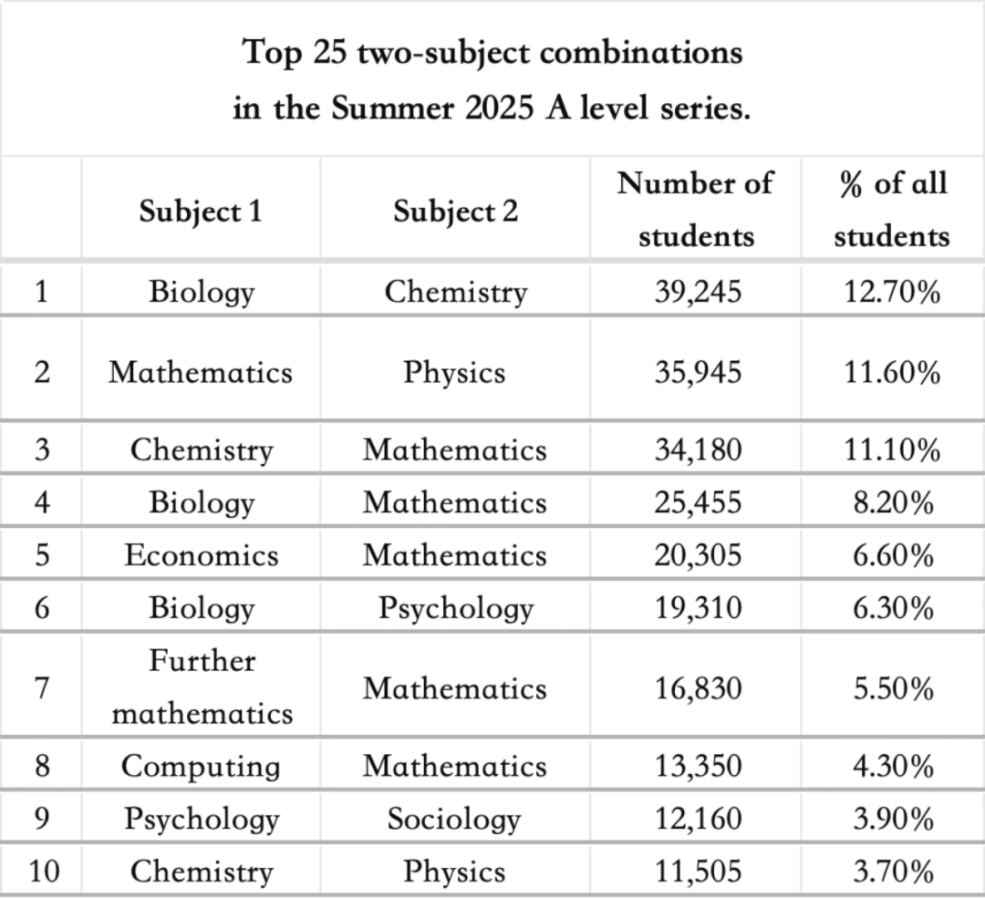 2025年A-Level 报考数据显示,数学依旧是TOP1.数学科目几乎贯穿了所有主流组合!