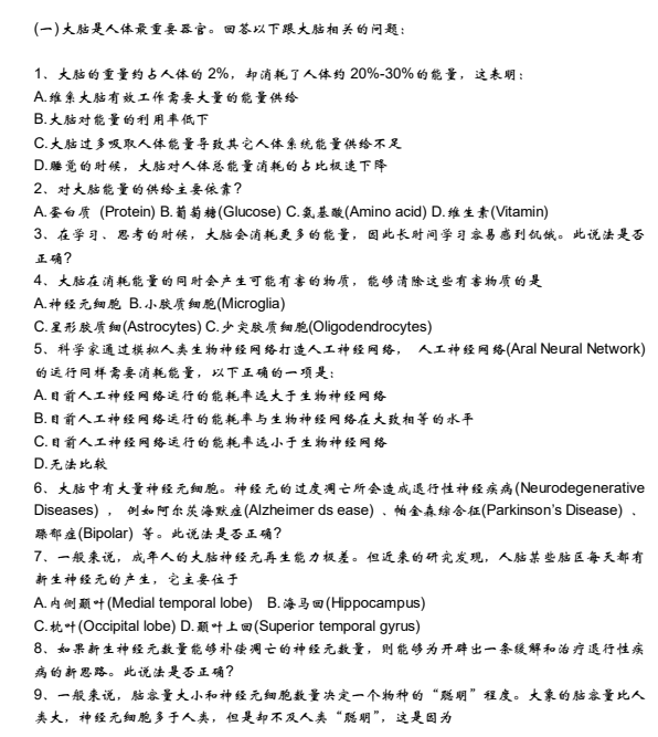 Brain Bee脑科学活动历年真题