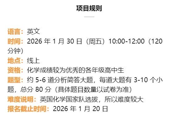 作为一项国际竞赛,UKCHO对学生的化学思维、创新和解决问题的能力也有较高要求;