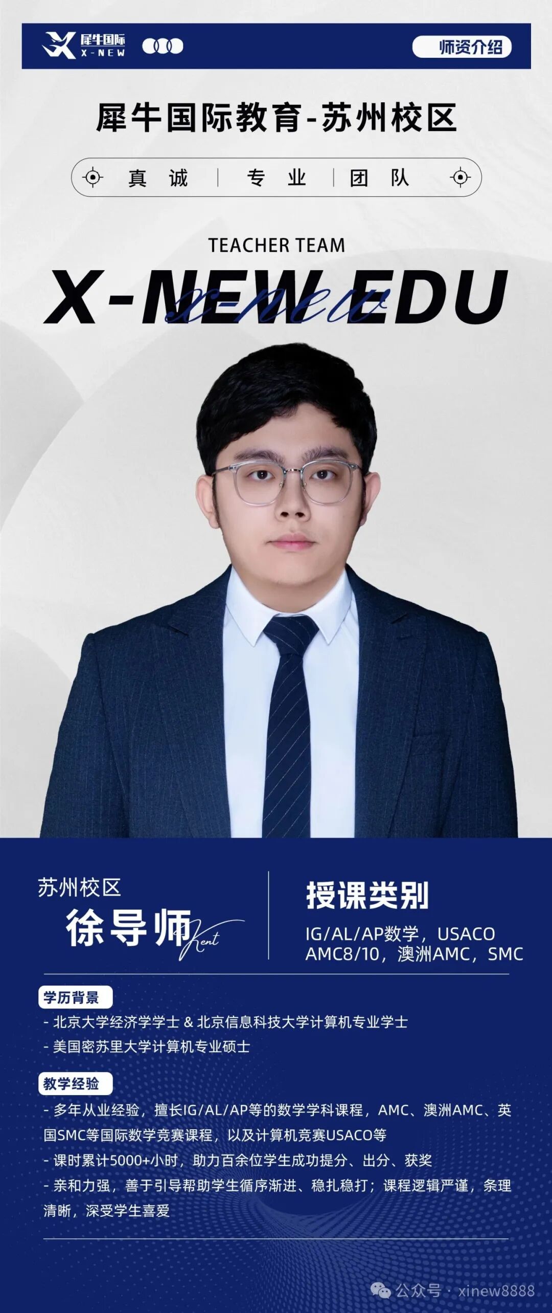 非考点学校学生只能找合作的机构进行代报名,咱们犀牛在苏州有专门的线下考点提供给在读学员,更多amc8代报名可咨询客服了解