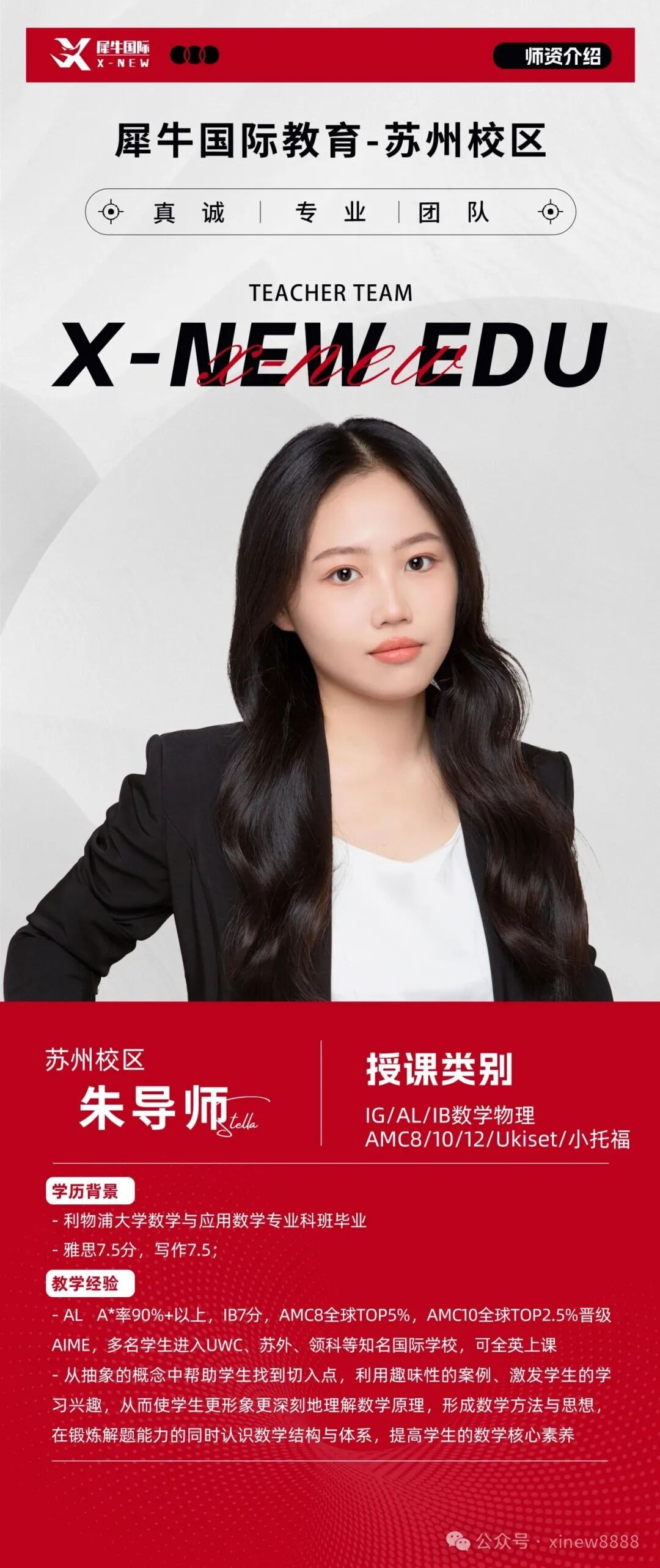 苏州AMC8竞赛培训课程师资教学经验丰富,学术功底扎实,善于引导学生循序渐进,稳扎稳打提升。