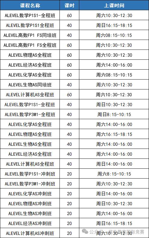 犀牛针对A-Level开设全科培训课程,多种班型,匹配不同基础学生。课程详细咨询客服,在线咨询了解!