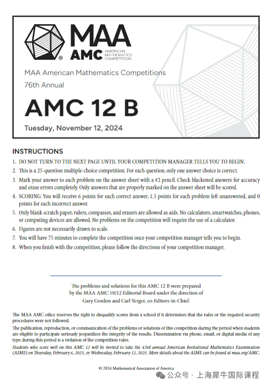 AMC12的知识难度相较于AMC10.会更高一些,AMC10中不考察的三角函数、进阶代数学和高等代数学,都包含在AMC12的考察范围内,AMC12的考点涵盖所有高中部分的数学知识,但是不包括微积分部分的知识。