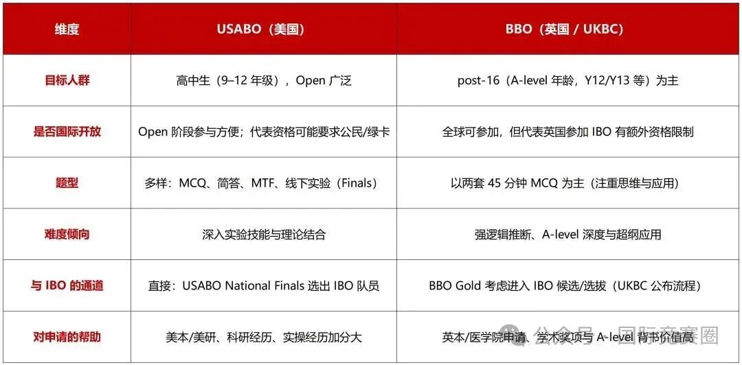 你的选择,应与个人学术路径(US/UK/其他)和竞赛目标(想入 IBO?想为美本/英本申请加分?)一致。
