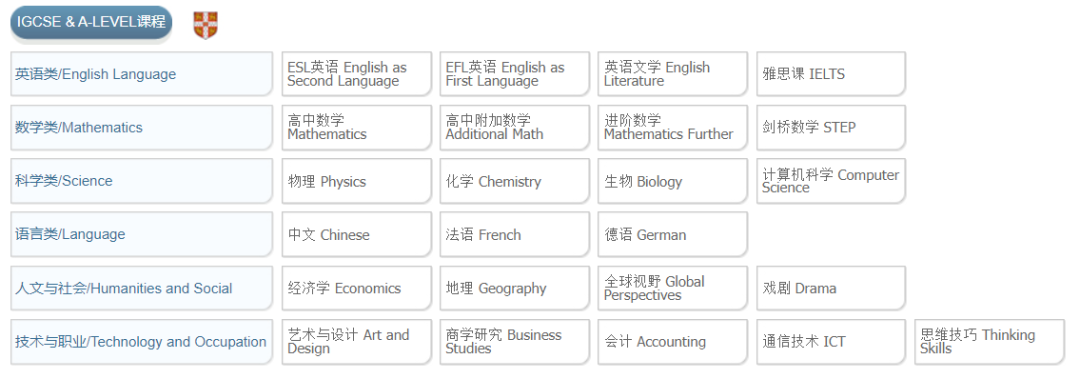 很明显可以看出,不同国际学校的A-Level国际课程开设科目不同,并不能涵盖所有的AL体系课程,因为师资集中力量不同,需要更大强度的发挥学校的优势。