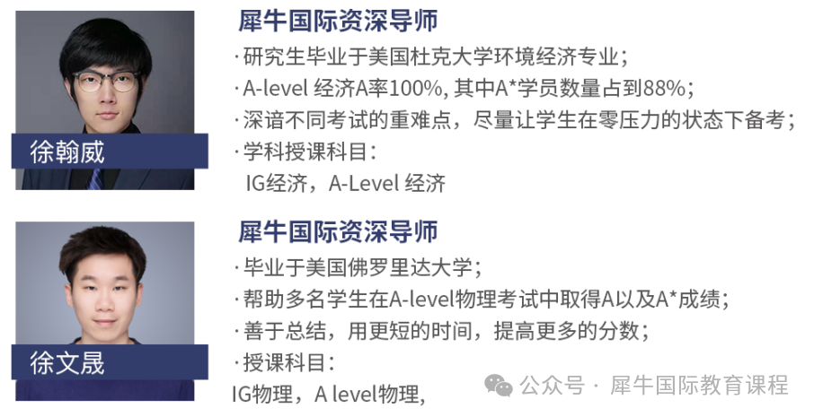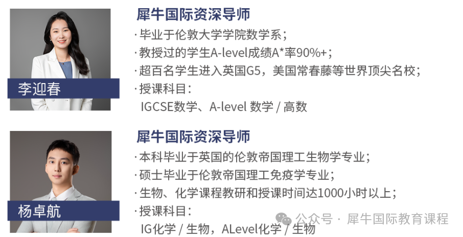 犀牛教育IGCSE课程师资团队实力雄厚,授课教师均来自海内外top名校,有非常丰富的教学经验,老师们常年深耕于国际学科体系,对于国际学校的考纲教程了如指掌。