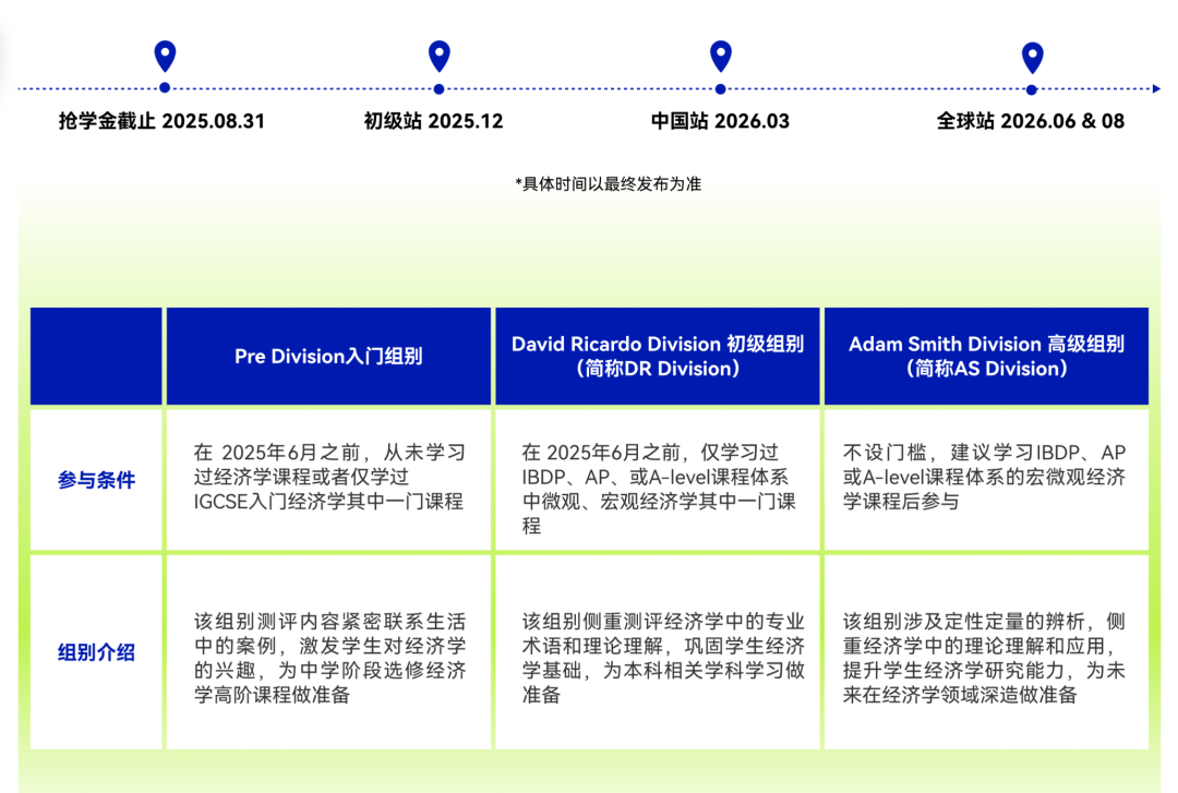 参与条件:在 2025 年 6 月之前,从未学习过经济学课程或者仅学过 IGCSE入门经济学其中一门课程;