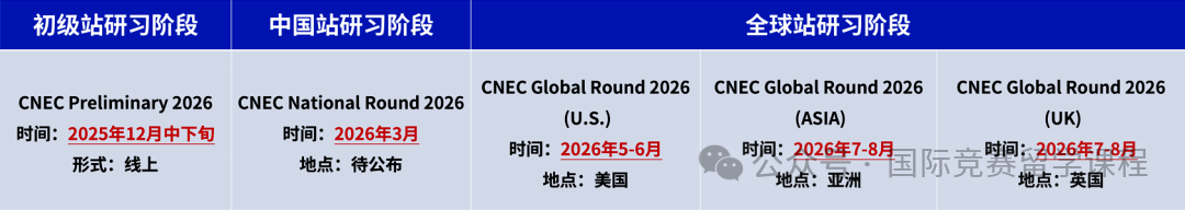 过去NEC的国际赛点主要集中在美国本土与亚洲站,今年首次在英国设立赛点。这意味着中国学生不止有机会冲击美国赛区,还能通过英国站展示实力,为未来申请牛剑、伦敦政经等欧洲顶尖学府增加曝光度。