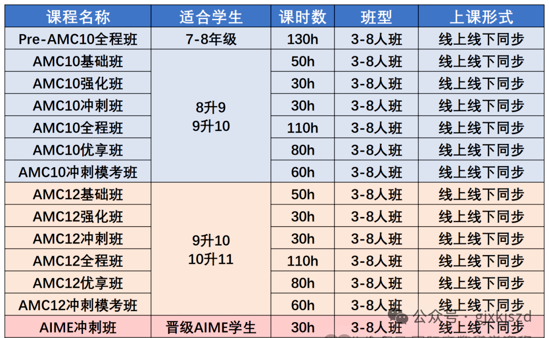 犀牛针对不同基础的学生开设Pre-AMC10全程班、基础班、强化班、冲刺班、优享班等多种课程,全国30+校区,可就近选择线下课程,也可选择线上授课,3-8人精品小班课,1对1制定学习计划。