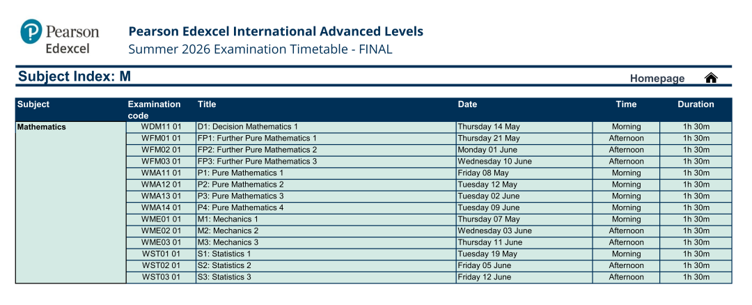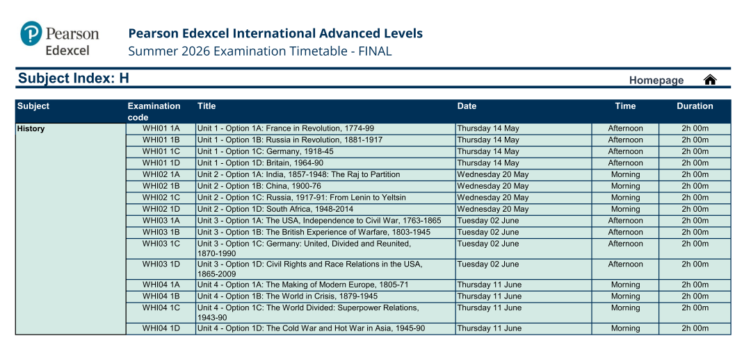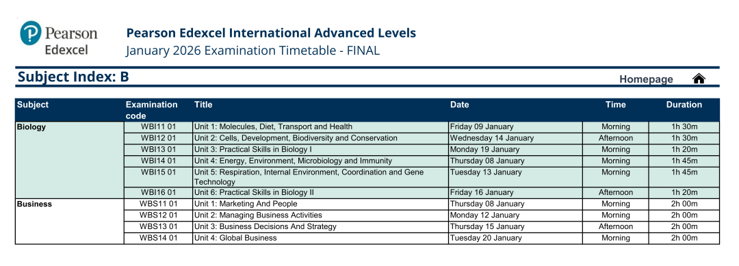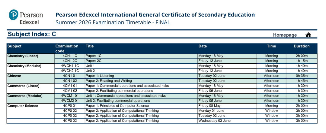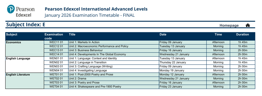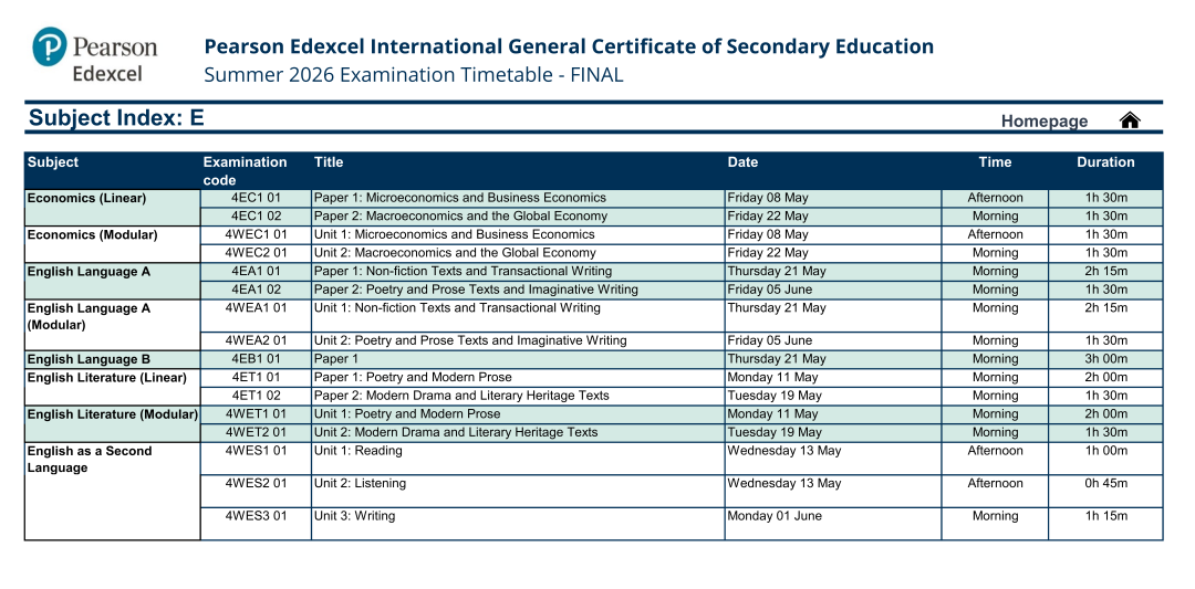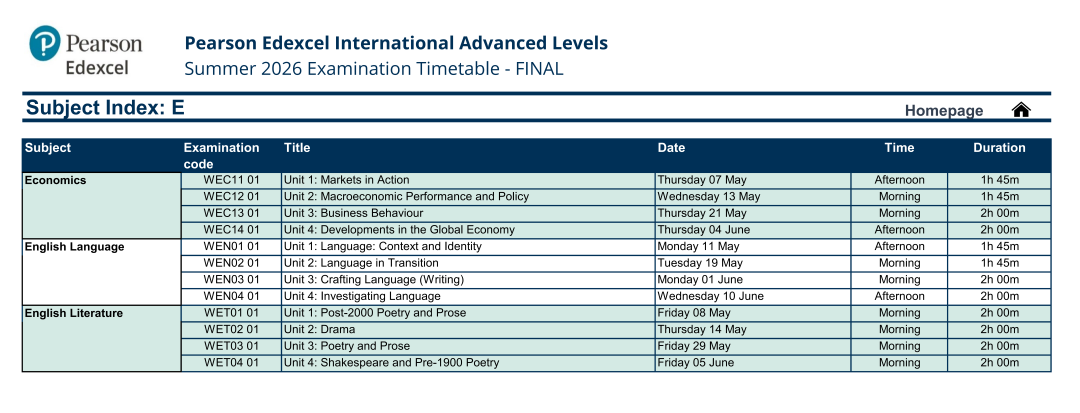 ● Edexcel考局有春、夏、秋两三个考试季,春季考试只设有ALevel考试。