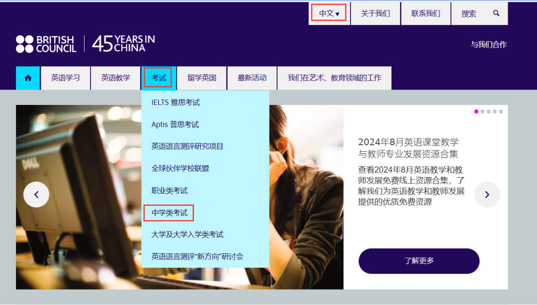 用浏览器打开网址:https://www.britishcouncil.cn/