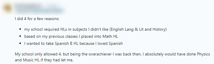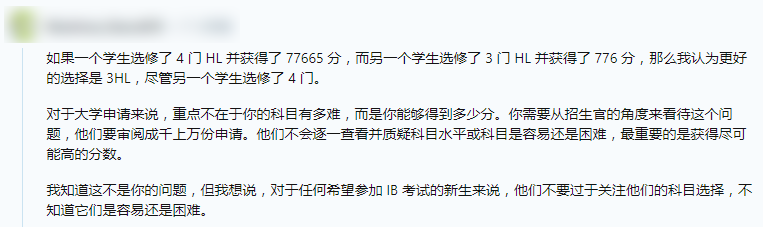 但也有一些学生选修了3+门的HL课程。关于这样做的原因,主页君梳理了一些IB学生看法: