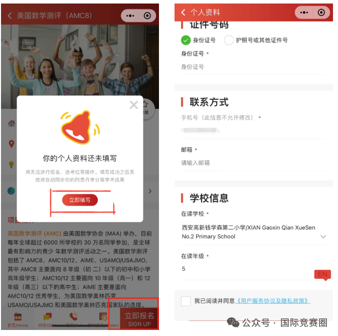 若所在学校为AMC中国组委会或阿思丹官方合作考点,学生可由学校组织统一完成报名流程。