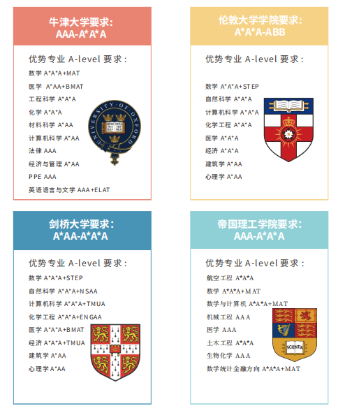 特别是梦想冲击G5名校(如牛津、剑桥)的同学,你们的目标需要定得更高,通常要拿到A*A*A-AAA的优秀成绩。而且,这些专业很可能对你们学了哪几门A-Level科目有具体要求,选课时就要提前规划好。