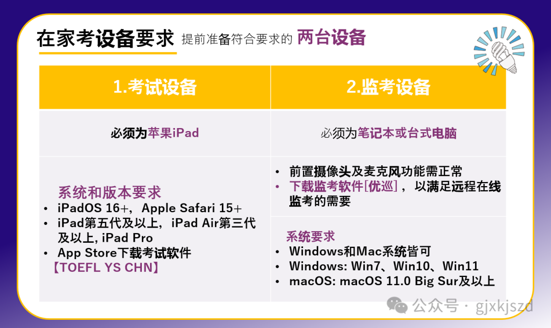 设备要求一台考试必须是苹果iPad,另一台笔记本监考