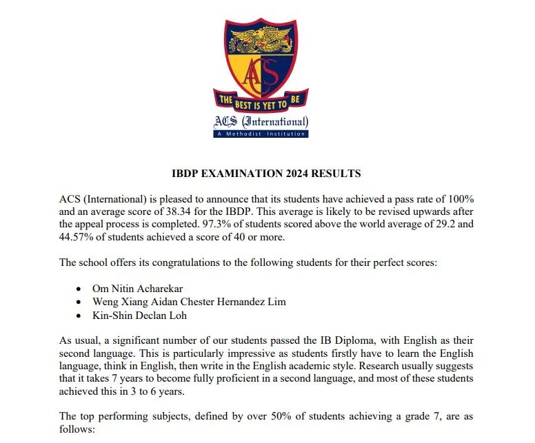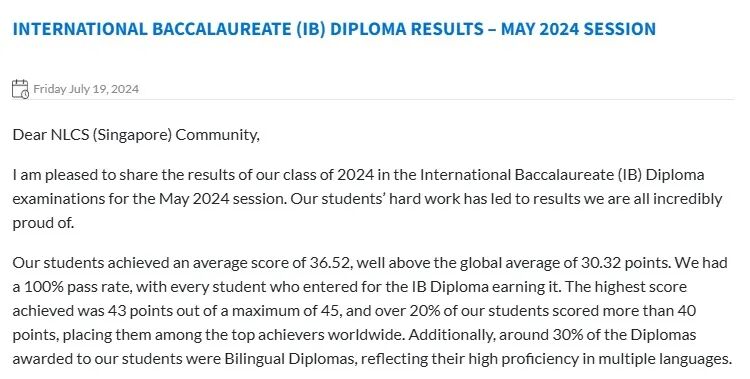 下面给大家介绍几所2024年IB成绩靠前的新加坡国际学校。