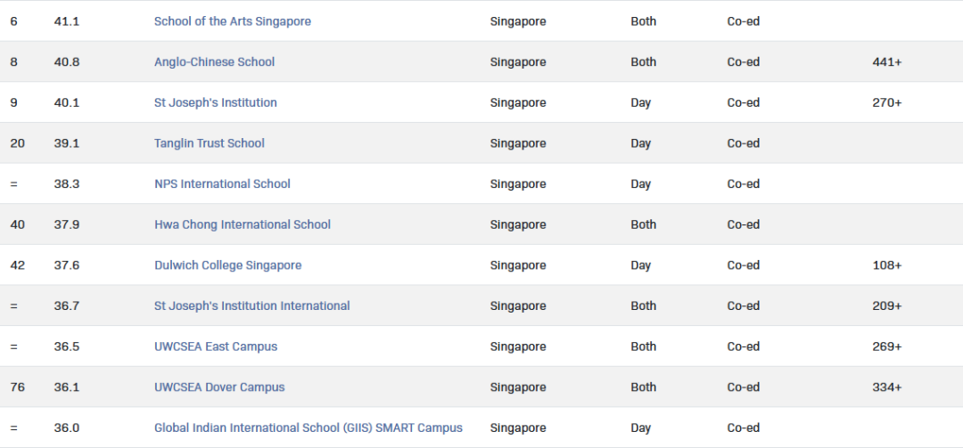 新加坡的国际学校因卓越的IB成绩而享誉全球,Best Schools网站发布了全球优秀IB学校的排名,新加坡可谓是这项排名的霸主,共有11所学校跻身前列.这11所学校分别是新加坡艺术学院、英华自主、圣约瑟书院、东陵信托学校、NPS国际学校、华中国际学校、新加坡德威国际学校、圣约瑟国际学校、UWCSEA国际学校东校区、UWCSEA多佛校区以及环球印度国际学校。