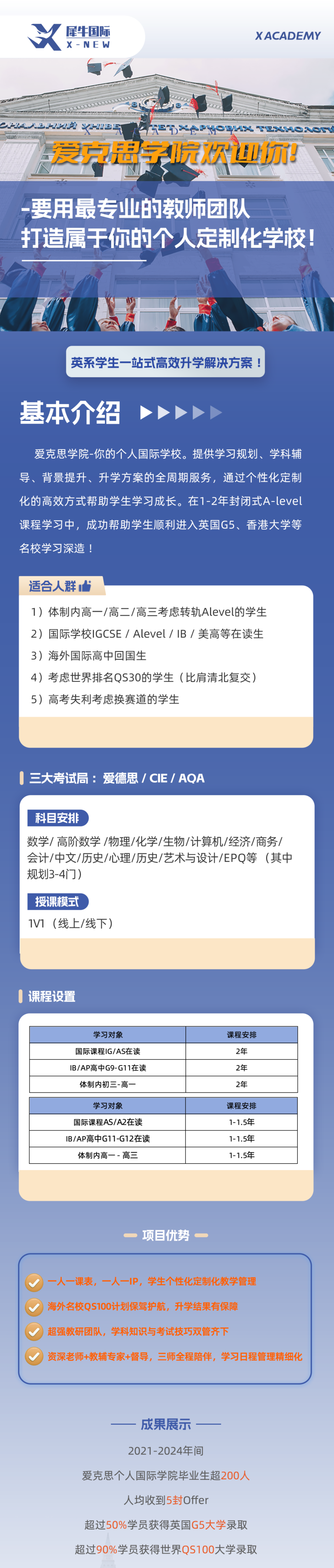 Alevel脱产课程集中学习:全身心投入,高密度,系统化,学习效率高。