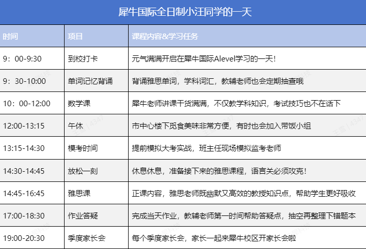 展示犀牛国际全日制小汪Alevel脱产学习的一天