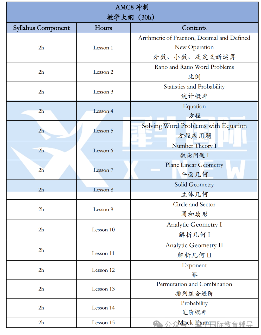对于三年级学生,我们建议以【构建知识体系】为核心学生可先系统学习AMC8所涉及的代数、几何、数论与计数等内容,待建立起完整的知识框架后,再逐步进入实战训练。