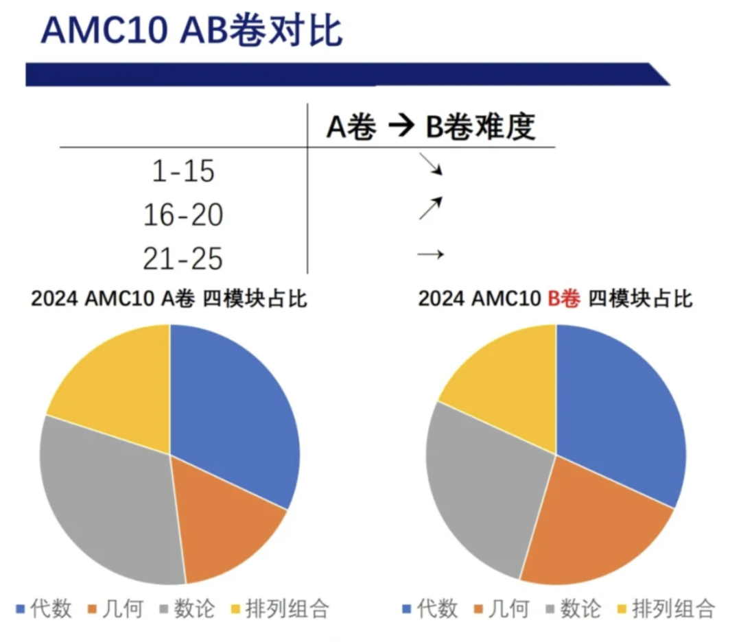 AMC10数学竞赛-A卷和B卷的难度系数整体一样,但试卷难题分布有细微差别。