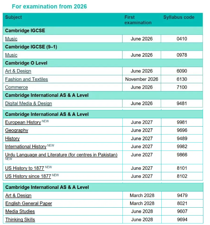 包括首次开设的全新科目,以及经重大调整的现有大纲。调整内容可能涉及: