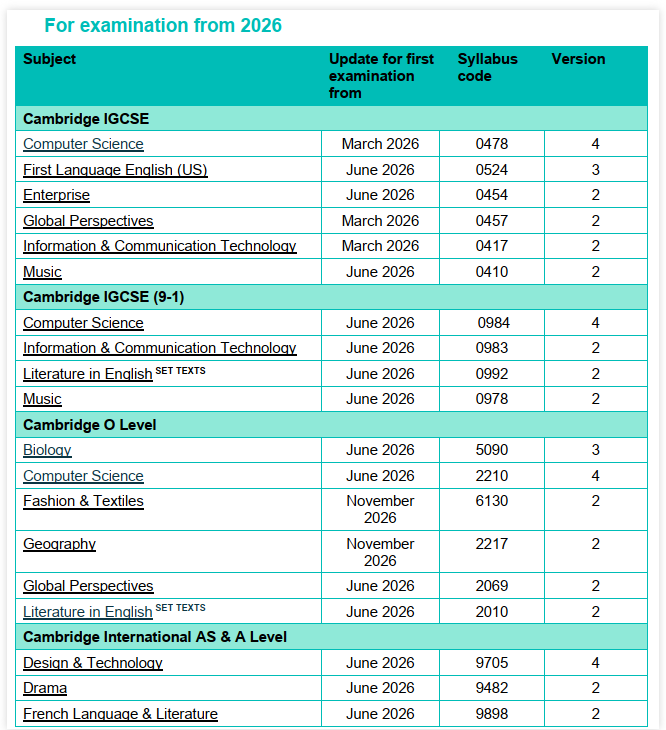 CIE大纲定期更新,国际课程的最大特点就是不断调整,以适应学生的学习需求。
