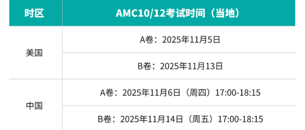 AMC12数学竞赛已成为申请顶尖院校的重要通行证,每年吸引着众多中学生参与。2025年AMC12考试已经进入倒计时,时间大家别记错: